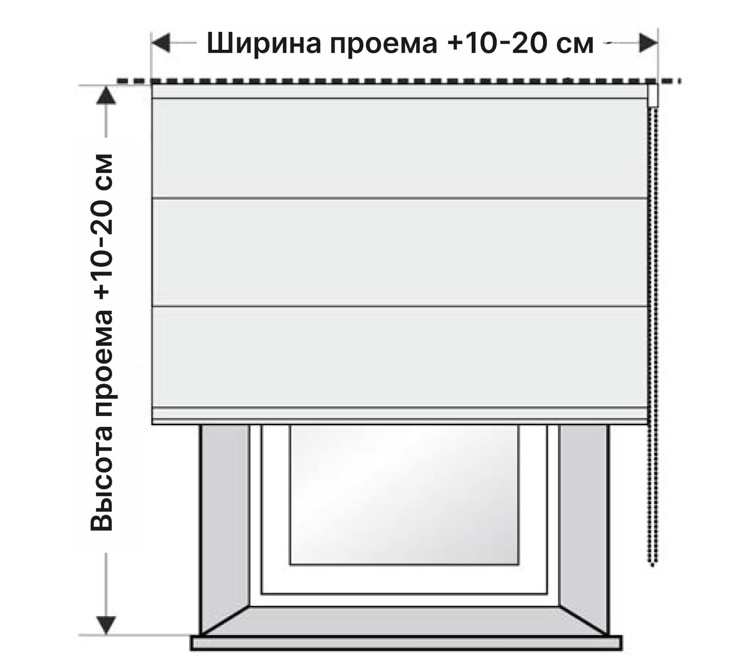 При установке римской шторы в оконный проем необходимо от его ширины вычесть минимум 3 см